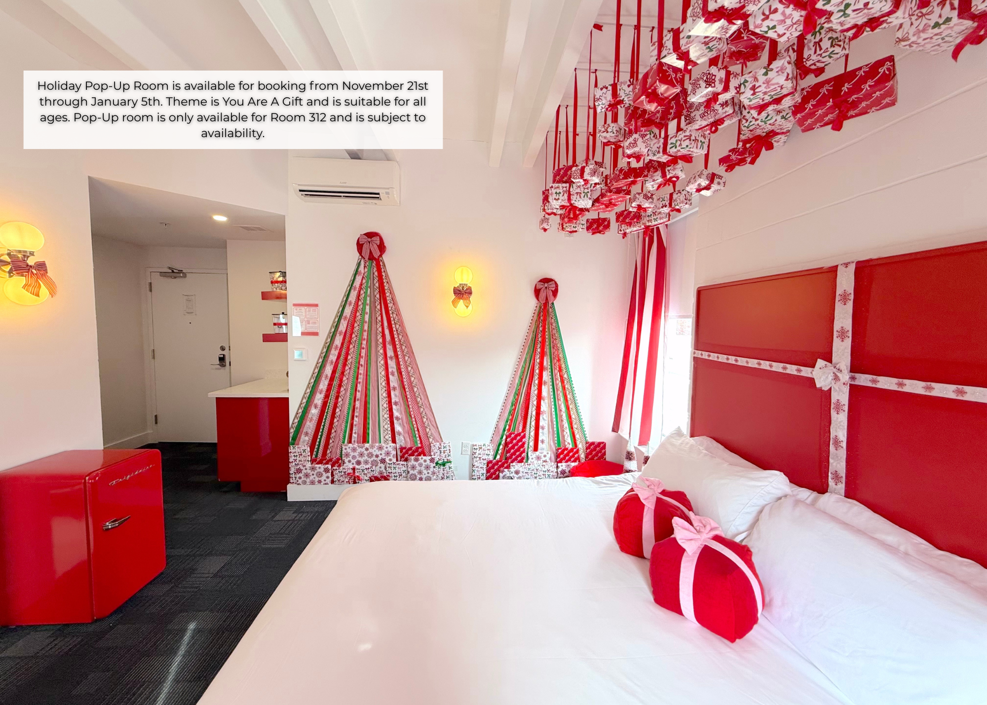 **This room will be decorated for “You Are A Gift” Holiday Pop-Up room for all stays between November 21, 2025 and January 5, 2026. In-room perks include a cookie delivery coupon, complimentary chocolates, a hot chocolate bar, and more!