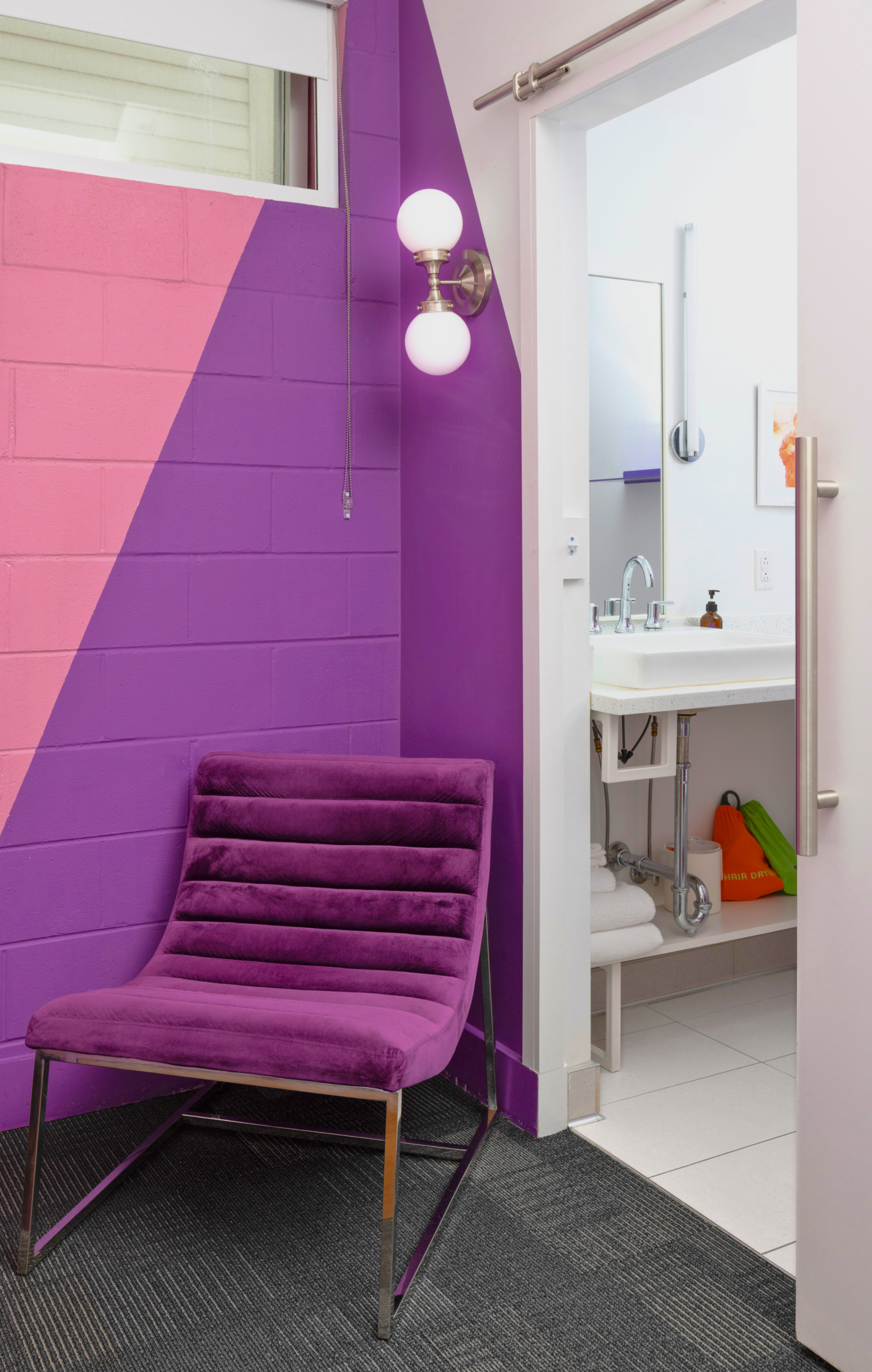 Designed for travelers on a budget, this lodging option means you don’t have to compromise on price in order to have the unique ‘boutique hotel’ experience. Vibrant insta-worthy pink and purple colorblock walls and matching shower bring an artistic flair to the space. Attentive features include walls adorned with local art, a Dyson hairdryer, a small basket of hand-selected local snacks, and much more!