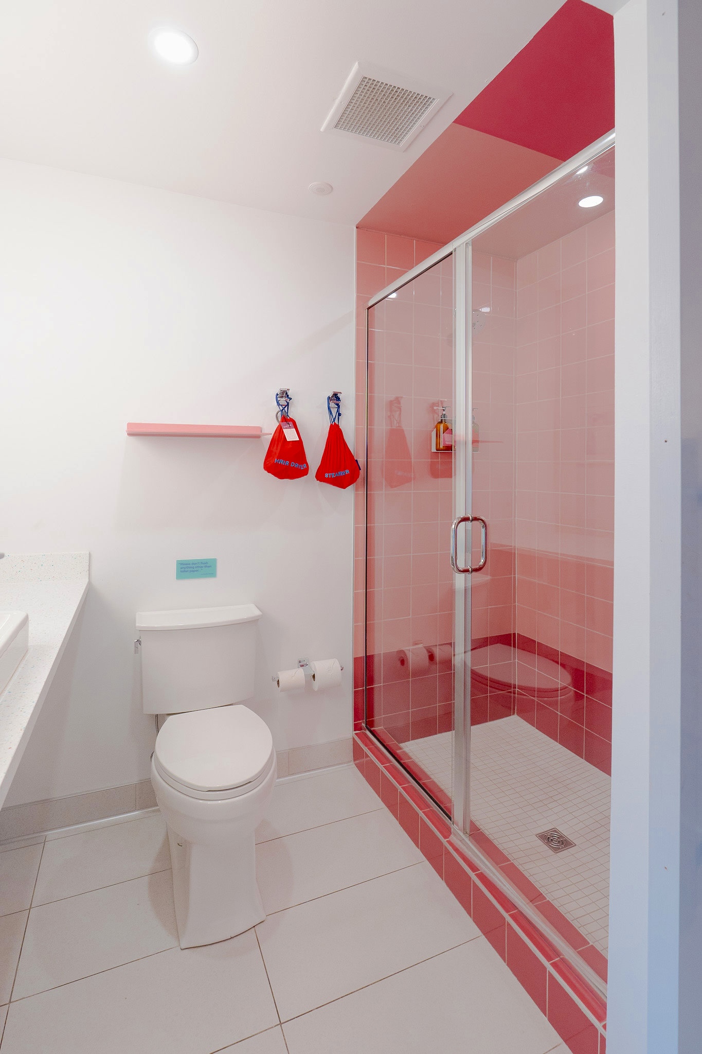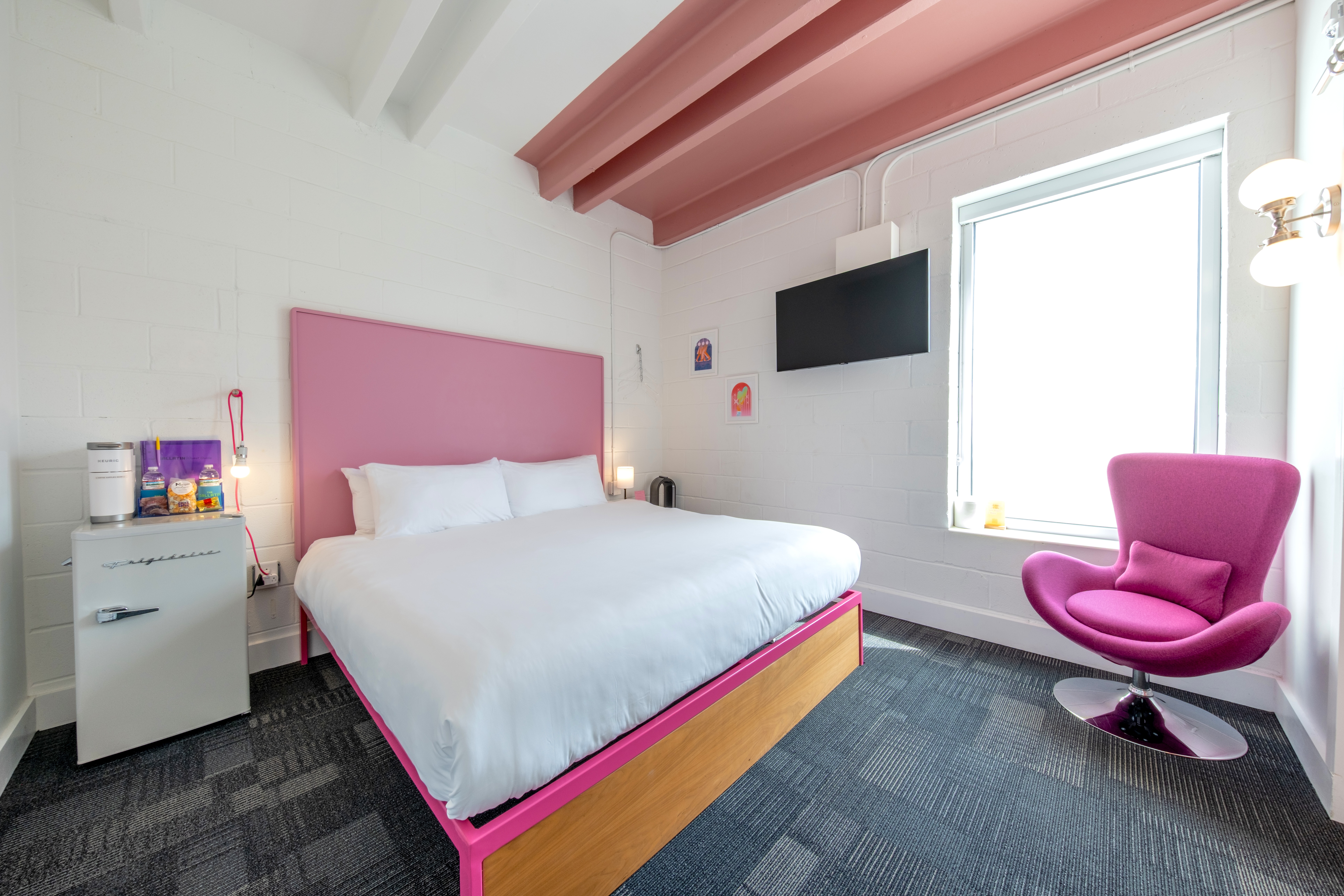 Designed for travelers on a budget, this lodging option means you don’t have to compromise on price in order to have the unique ‘boutique hotel’ experience. Vibrant insta-worthy pink colorblock walls and ceilings, and a matching pink-tiled shower bring an artistic flair to the space. Attentive features include walls adorned with local art, a Dyson hairdryer, a small basket of hand-selected local snacks, and much more!
