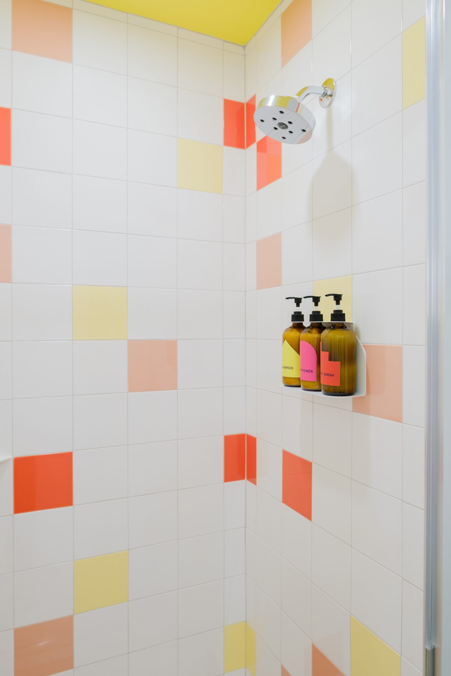 Classic Queen Room 314 features a custom-made queen bed, without compromising space. Vibrant and insta-worthy yellow color block walls and ceilings, and a retro-inspired shower bring an artistic flair to the space. Attentive features include walls adorned with local art, a dual-sink vanity, a small basket of hand-selected local snacks, and much more!